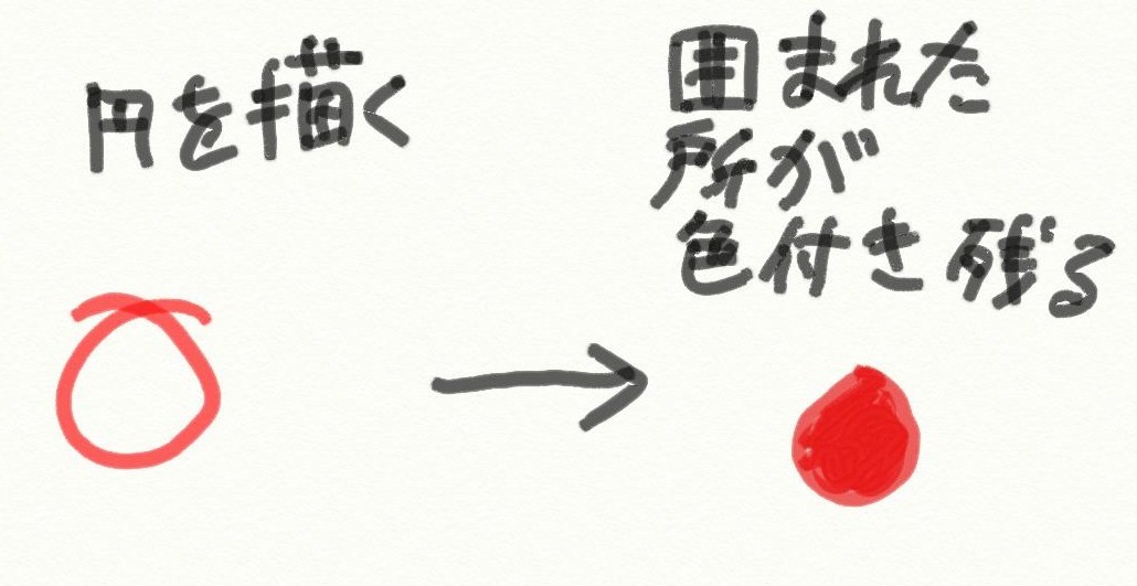 でも描いた丸が残るんじゃなくて、”描いた丸に囲まれた領域”がとつぜんあらわれるんです。